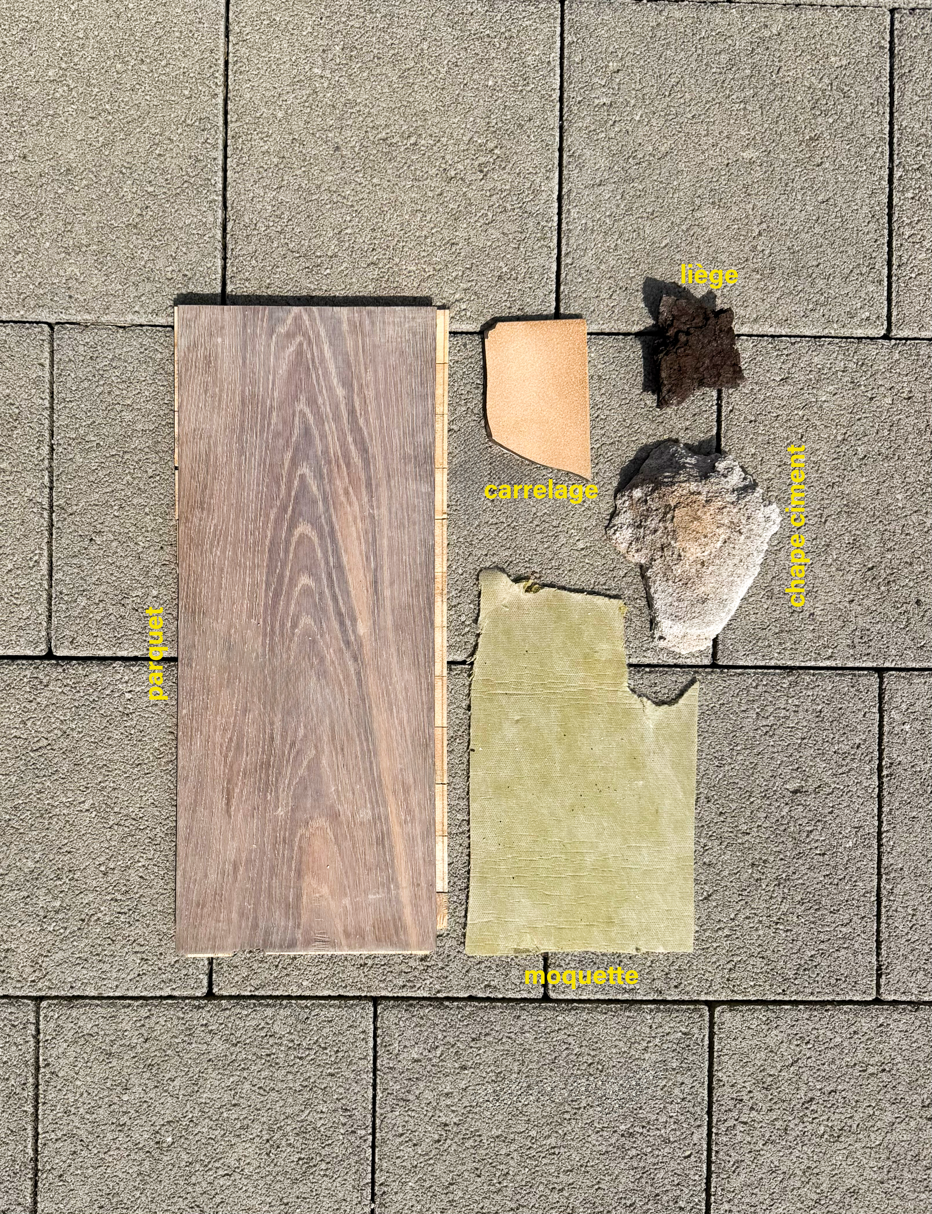 Ici, le sondage nous a permis de voir que l’isolant (le liège) avait été collé à la chape, ce qui nous posera problème lors du tri des déchets matériaux du chantier. Cela nous a également permis de soulever la question de l’amiante. En effet, le carrelage, datant des années 70/80 a de fortes chances d’en contenir, ce qui pourrait être dangereux. Il va nous falloir faire appel à un expert pour confirmer ou non sa présence avant toute démolition et au besoin faire intervenir une entreprise spécialisée.